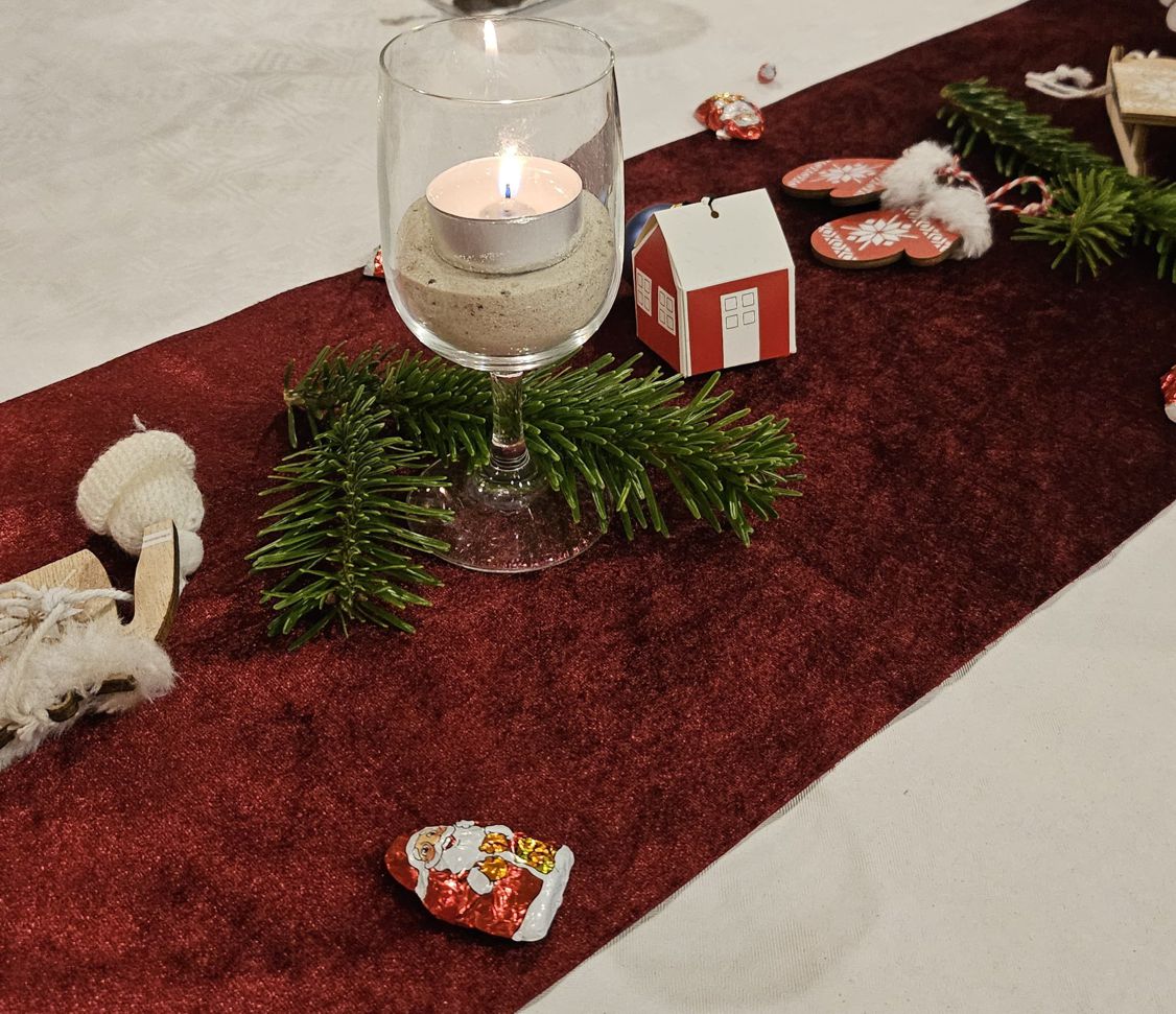Für eine festlich geschmückte Tafel sorgten Manni und Juchfruu Melli, die mit viel Liebe zum Detail eine weihnachtliche Atmosphäre zauberten. Nach einem leckeren Essen entwickelte sich ein gemütlicher Abend voller schöner Gespräche, kleiner Einlagen und geselligem Beisammensein.